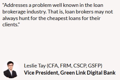 And if you were trying to understand questions like, what is a suitable loan type for you, how to compare between loans offers - honestly, ChatGPT or our chatbot can assist you for free. There is no magical insider information that they can provide you, which is something that you saw that even a lender have debunked earlier. In fact lenders often have a love hate relationship with them and actually love that when they receive enquiries from our app, it is directly from the borrower, without a broker involved:
