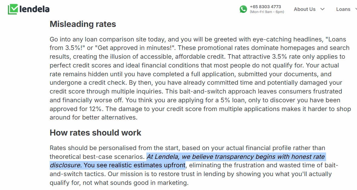 We aren't talking about smaller players here, but listed companies or subsidiaries of listed companies where thousands of Singaporeans visit each day. So imagine what the smaller players are doing. They highlight a systemic issue within the loan industry, also evident among intermediaries like MoneySmart, Lendela, Roshi, and SingSaver. We are pushing for industry regulation to regulate loan intermediaries, including us, and to ensure transparent loans ads and protect consumers. Add your voice to the movement here. Many already have.