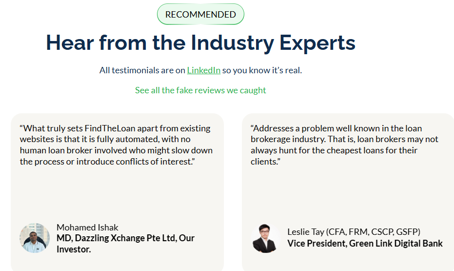 After we called them out for fake reviews on this LinkedIn post. Touting over a hundred 5-star reviews (there was only one on their Google review page, and even then, we doubted its authenticity) despite just launching seems dubious. The reason we decided to check it them out and investigate, because a borrower reached out and asked how we are different, as he had actually used them and didn’t want to deal with another broker.In an attempt at damage control, they later clarified on their homepage that they used the reviews from their sister company because the same team is behind it. (Wait, how does that help? Wouldn’t that make 2 companies that you cannot trust?) Valid explanation or guilty conscience — we let you decide. We had hoped such a senior banker from CIMB would have more integrity than that and at least apologize to the public. But it seems like doubling down was the choice they made.